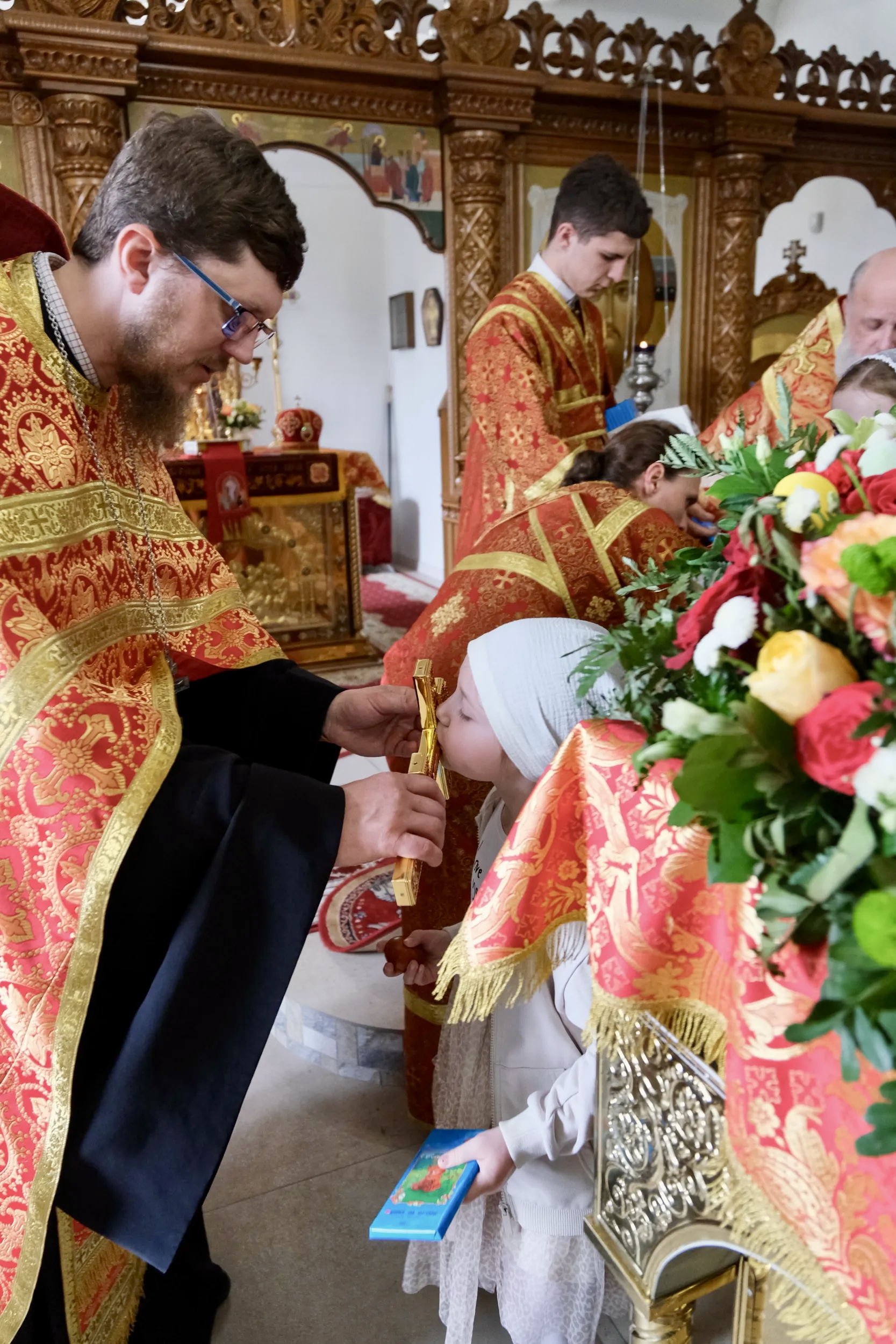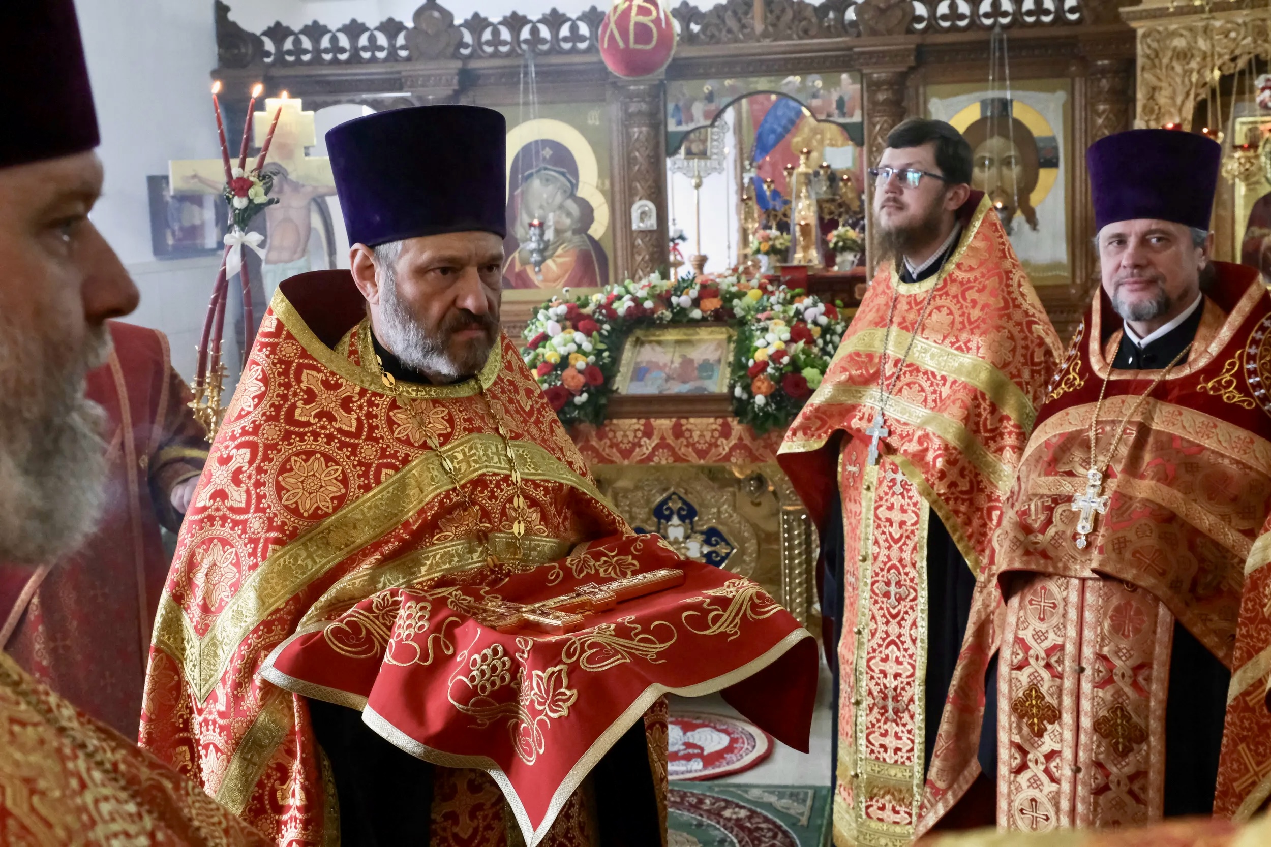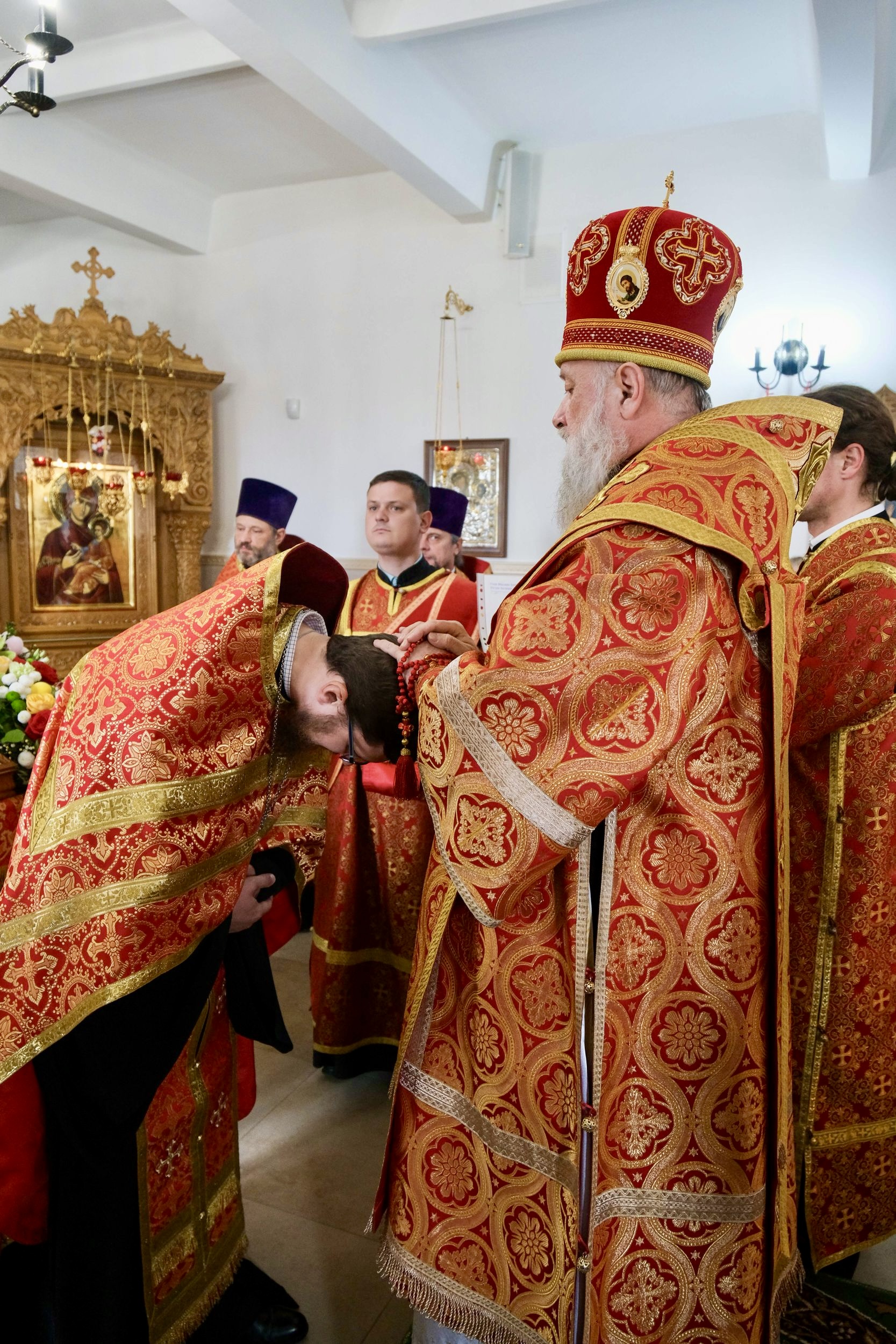 На малом входе за усердное служение Матери Церкви и ко дню Святой Пасхи клирик обители иерей Георгий Тыхнюк был награжден правом ношения набедренника.