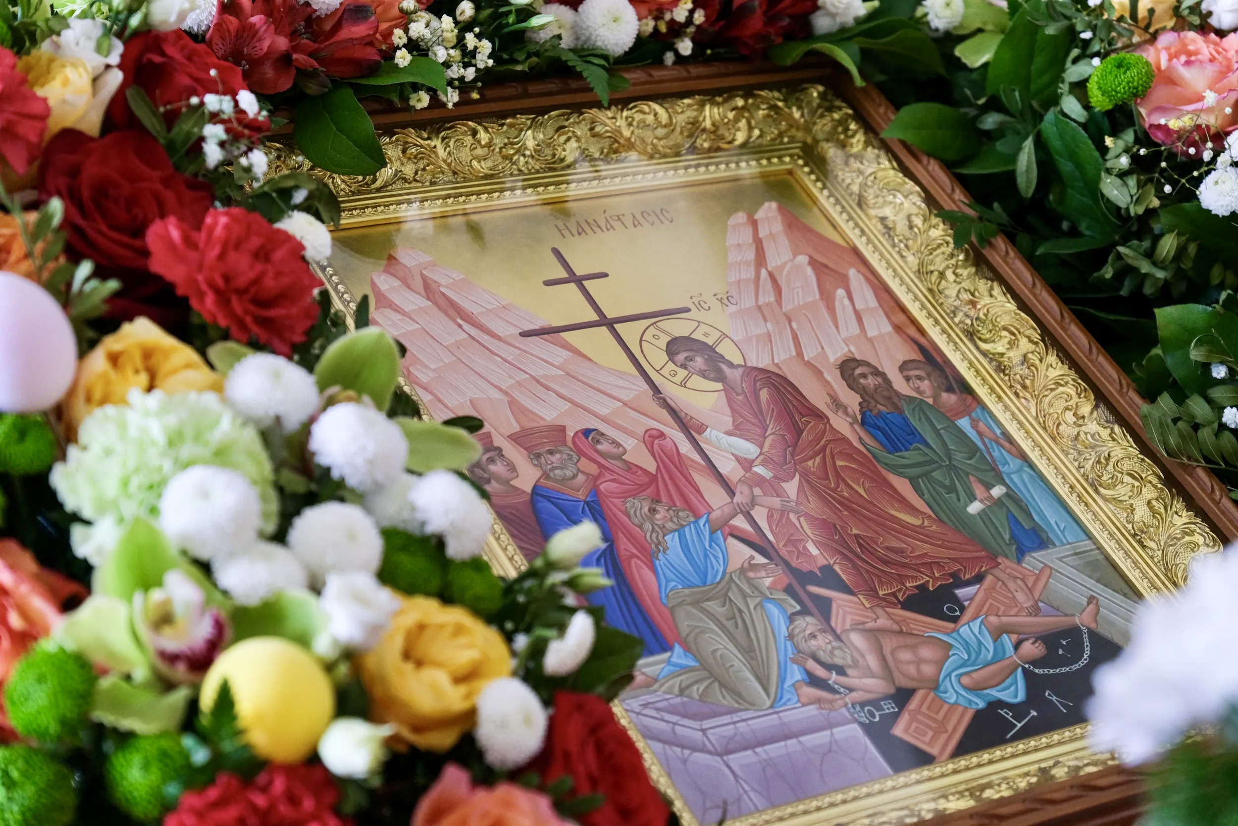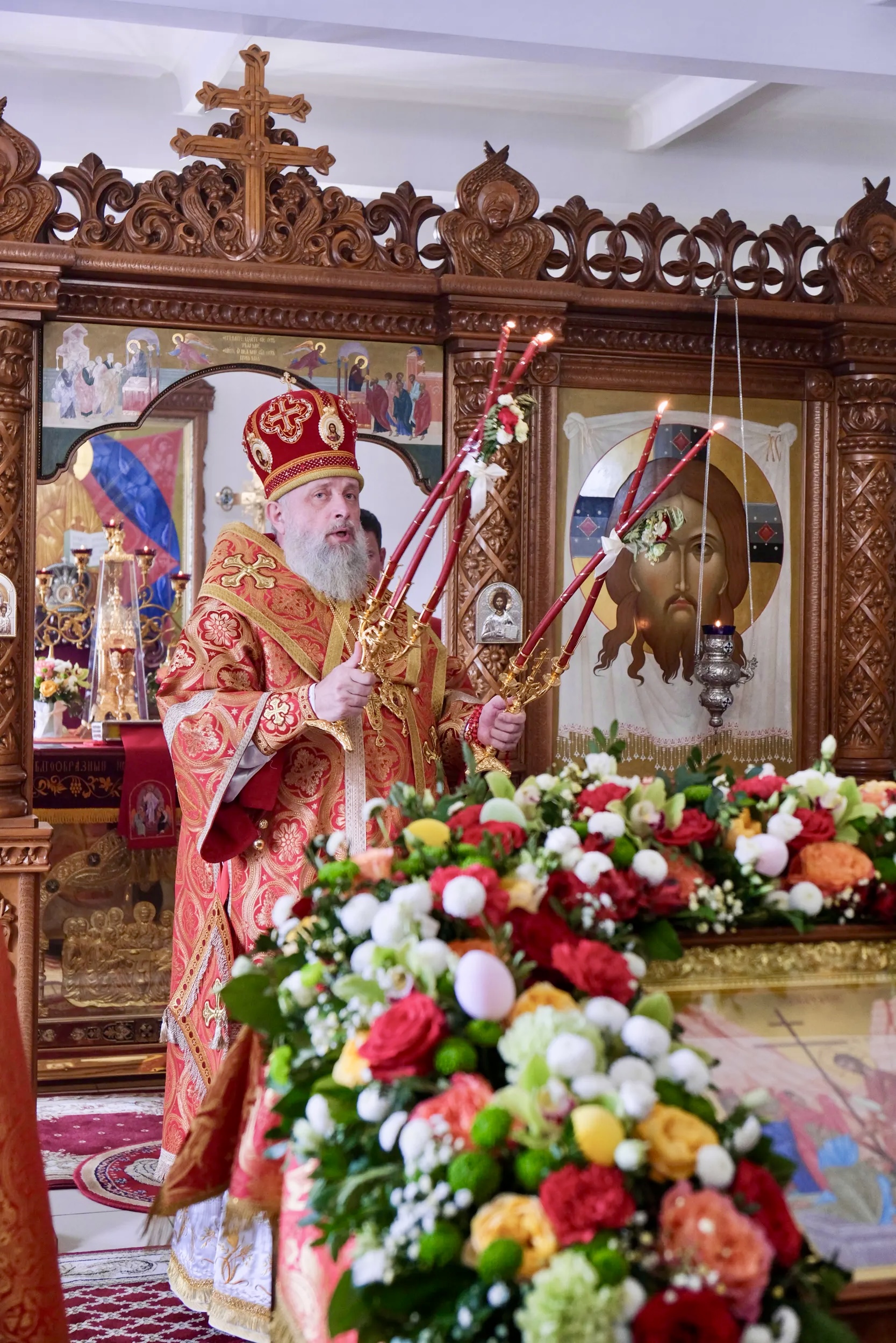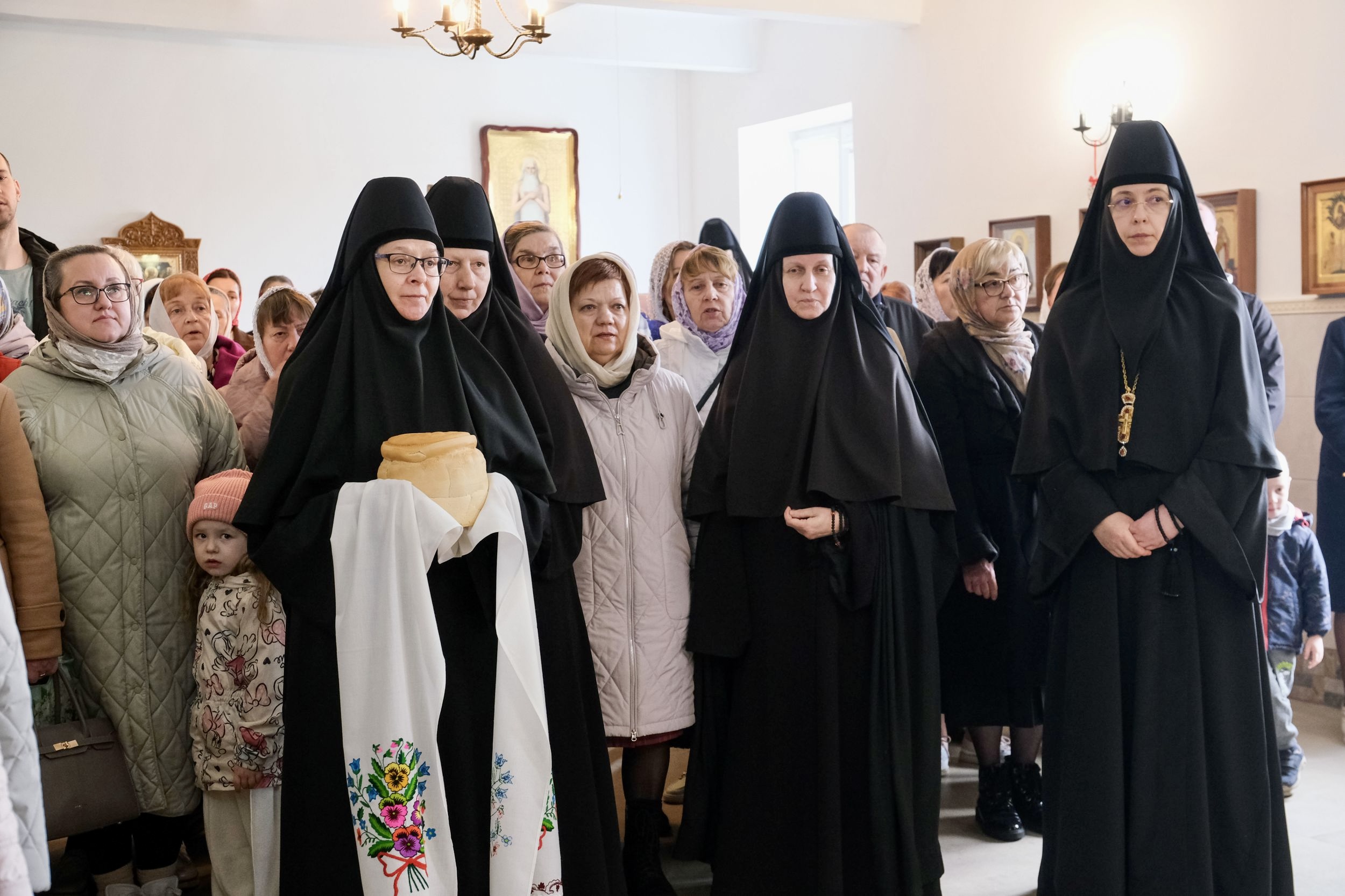 Настоятельница монастыря игумения Евфросиния в ответном слове поблагодарила Архипастыря за визит и преподнесла символ Воскресения Христова — красное пасхальное яйцо.