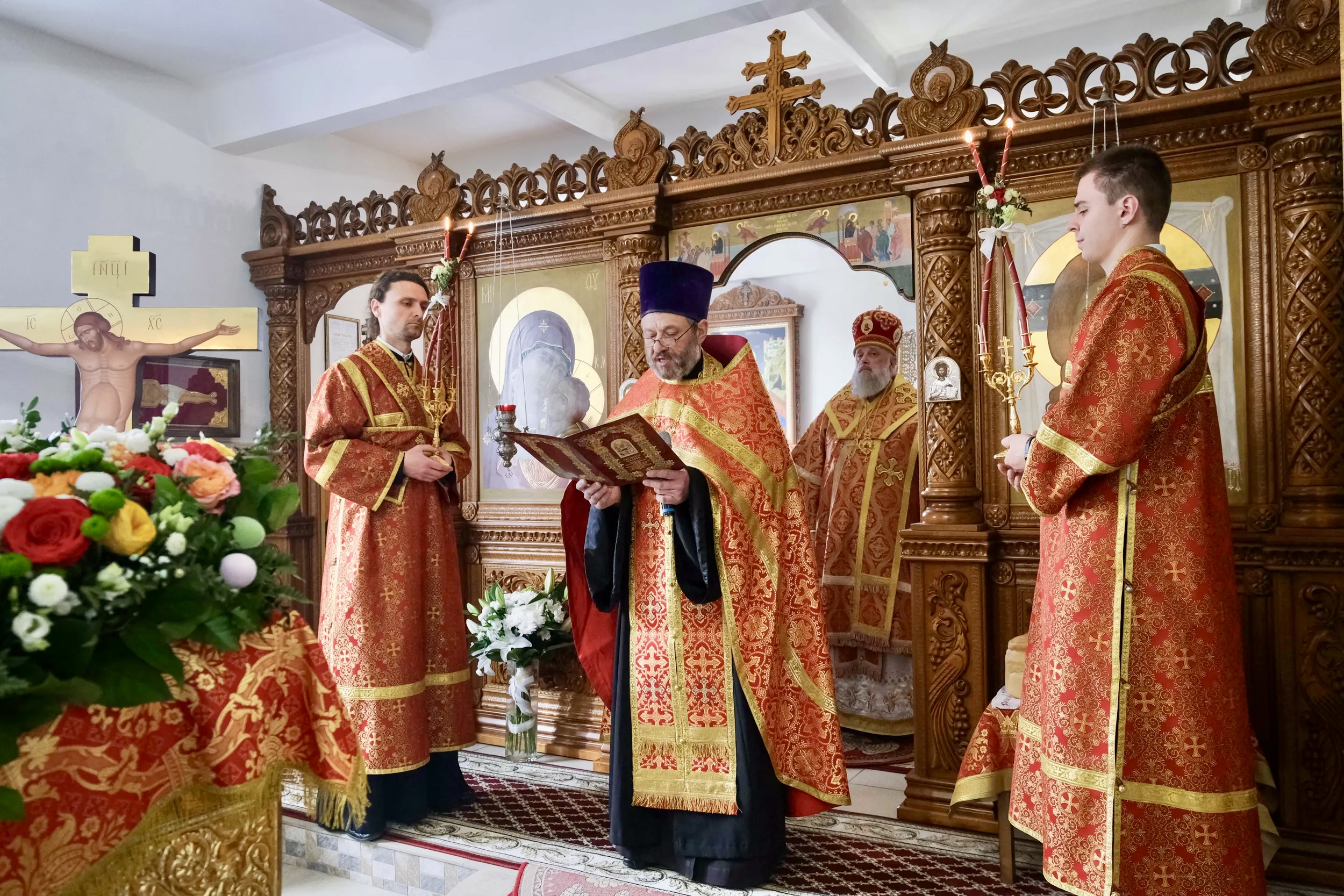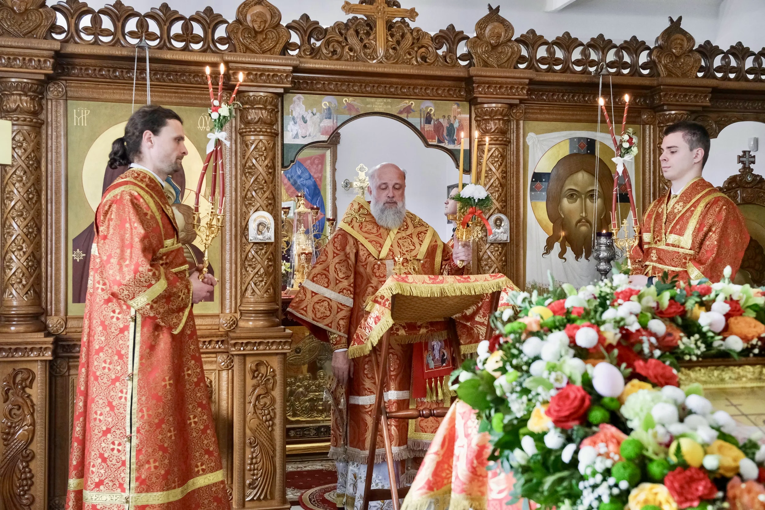После чтения Евангелия клирик монастыря иерей Михаил Паничев огласил с амвона Пасхальное послание архиепископа Брестского и Кобринского Иоанна.