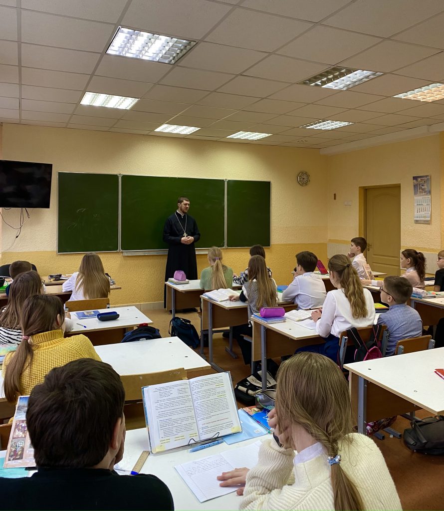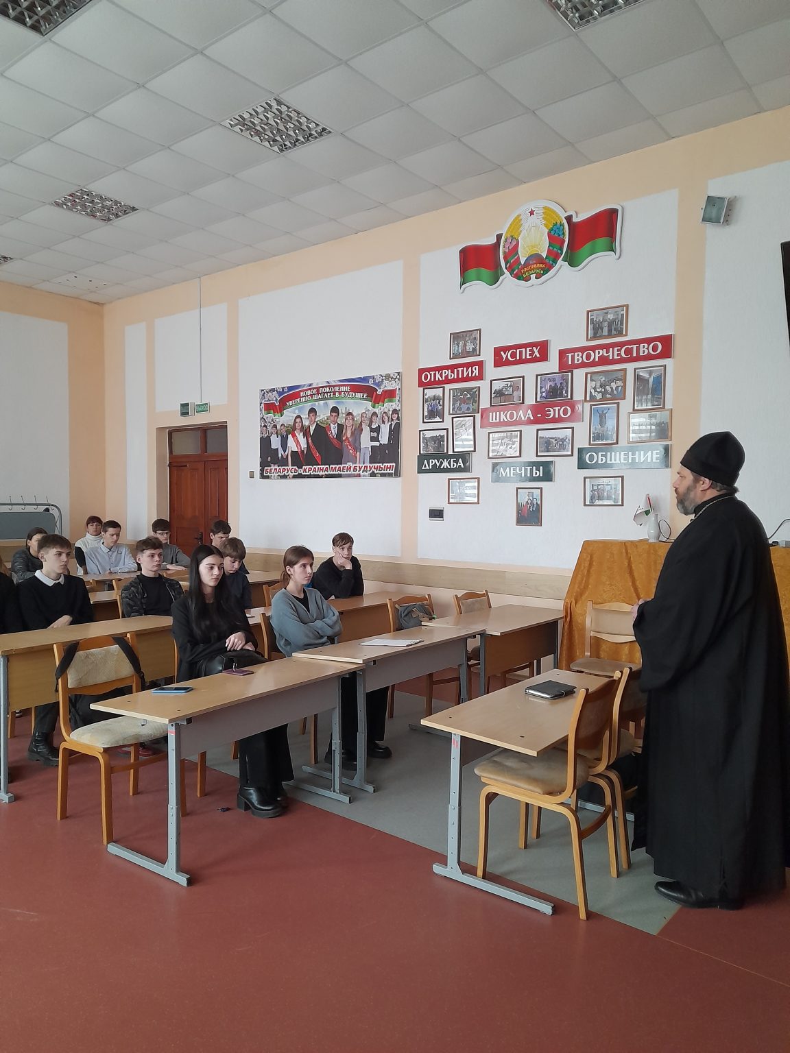 Клирики Спасского монастыря г. Кобрина иерей Михаил Паничев и иерей Георгий Тыхнюк проводят регулярные встречи с учащимися средних учебных заведений г. Кобрина — ГУО СШ № 1 и ГУО СШ № 8.