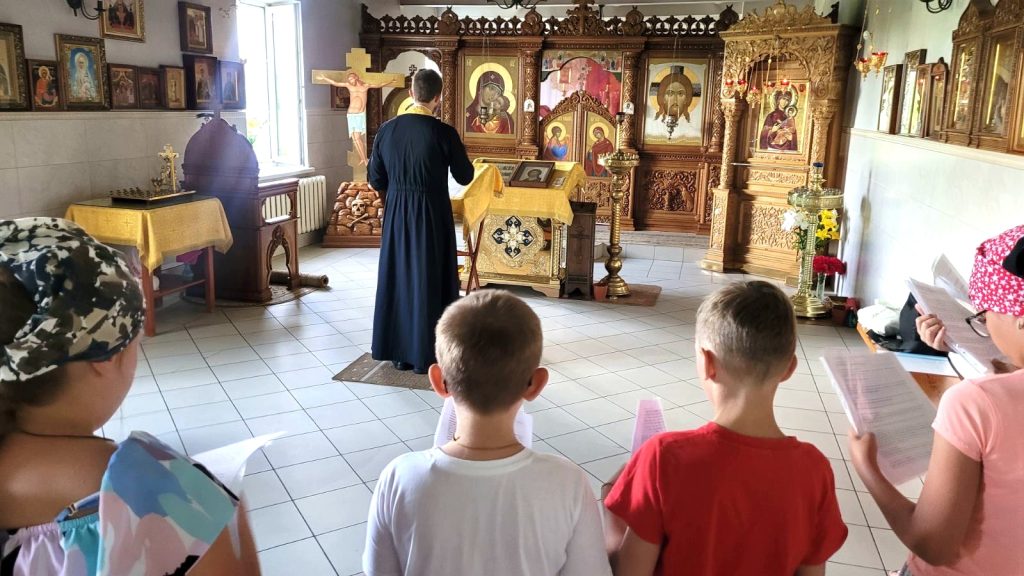 День начался с общей молитвы в домовом храме обители. Во главе с клириком монастыря священником Георгием Тыхнюком ребята прочли утреннее молитвенное правило.