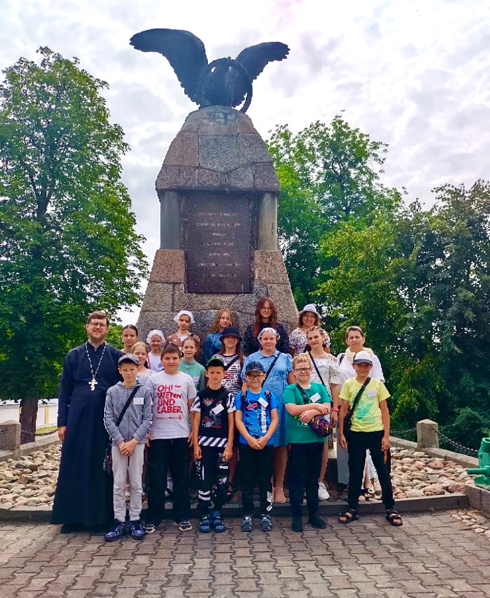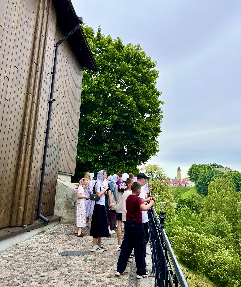 Во второй день после утренних молитв дети отправились на увлекательную экскурсию по историческому центру родного города. С большим интересом они слушали рассказы педагога об истории Кобрина, гуляли по знакомым улицам, впитывая атмосферу веков и узнавая тайны, скрытые в зданиях, памятниках, камнях.