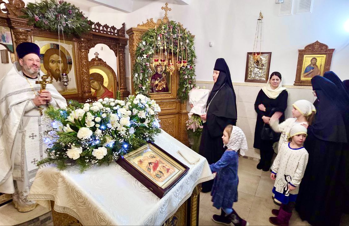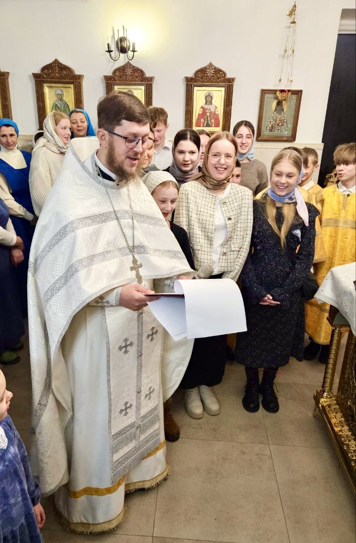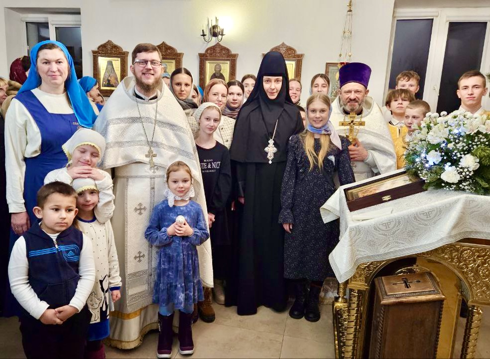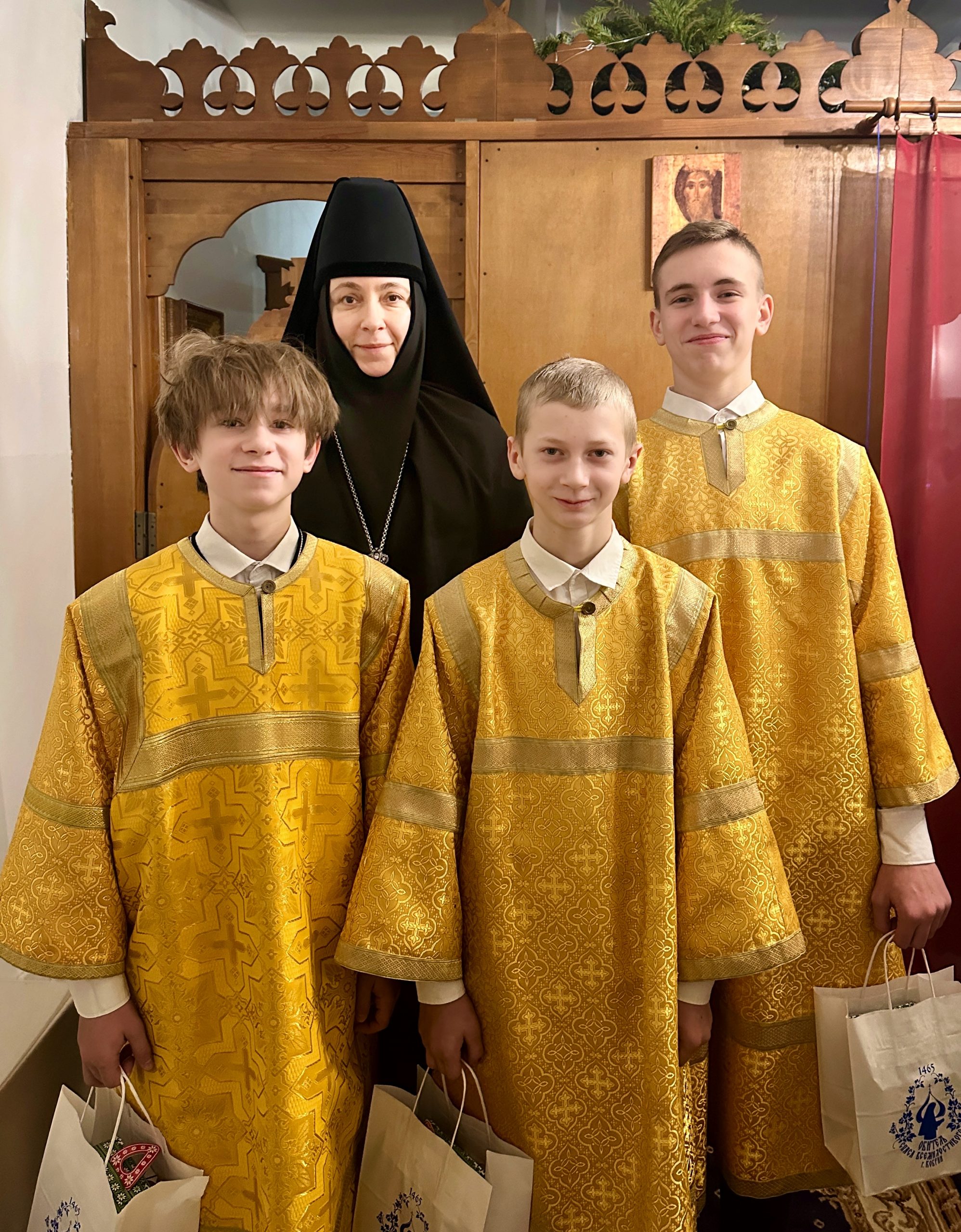 По завершении богослужения члены молодежного братства «Спасское» и воспитанники Воскресной школы монастыря во главе с иереем Георгием Тыхнюком поздравили матушку Настоятельницу, сестер и прихожан обители с великим праздником пришествия в мир Спасителя.